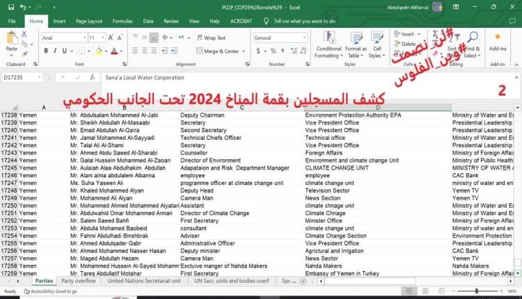كشف إستشاري التغيرات المناخية والتقييم البيئي وناشط ضد الفساد عبدالقادر الخراز كشوفات المسجلين بمؤتمر المناخ باذربيجان 2024م من الجانب الحكومي مقارنة بالمشاركين من المنظمات والدول المتقدمة.
