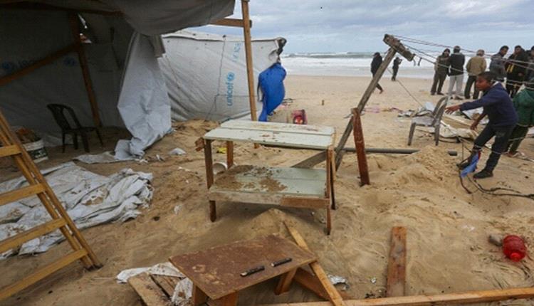 واجتاحت مياه البحر خيام النازحين المقامة على شاطئ مواصي خان يونس جنوب القطاع، وغمرت مياه الأمطار الخيام في مختلف المناطق الشمالية والوسطى والجنوبية، ما فاقم أوضاع النازحين الصعبة والقاسية.