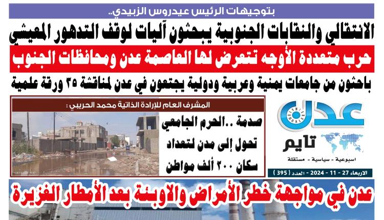 تصفح صحيفة عدن تايم بعددها رقم 395 الالكتروني .