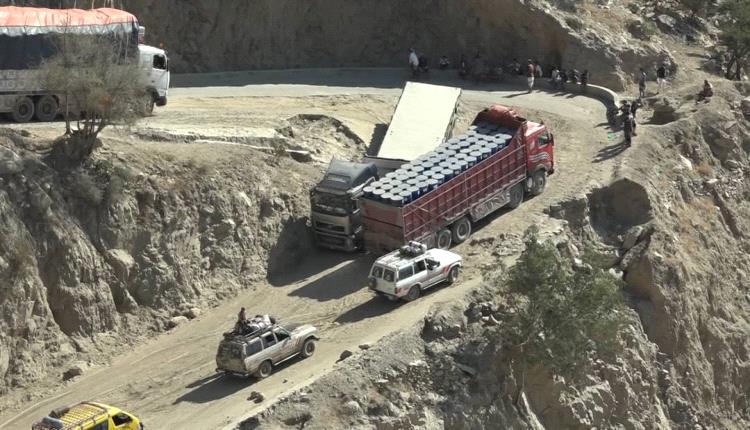 ضيق مسار الطريق وعدم تأهيلها، بات سببا رئيسا يقف خلف تعطل الناقلات، التي تسببت هي الأخرى في انسداد الطريق أمام حركة المرور، في ظل انقطاع الطرق الأخرى نتيجة الحرب، وانعدام الحلول أمام وجهات المواطنين؛ للوصول إلى مقاصدهم.