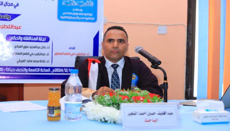 بحضور وزير الاقاف والإرشاد محمد بن شبيبه منحت جامعة تعز، ممثلة بكلية التربية قسم الإدارة والتخطيط، صباح السبت الباحث عبداللطيف حسين الفجير درجة الدكتوراه بامتياز في الإدارة التربوية عن أطروحته الموسومة "إستراتيجية مقترحة لتعزيز الشراكة بين وزارة الإدارة المحلية والجامعات اليمنية في مجال التأهيل والتطوير التربوي".