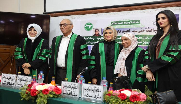 وحضر المناقشة عدد من الاكاديميين وزملاء واقارب الباحثة من جمهورية مصر واليمن، الذين قدموا التبريكات لها بعد حصولها على درجة الماجستير بامتياز مع مرتبة الشرف في تخصص إدارة اعمال ، مع نشر ورقة بحثية في المنظمة العربية للتنمية الادارية.