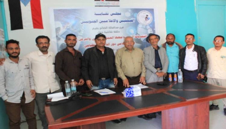 نظم مجلس نقابة الصحفيين والإعلاميين الجنوبيين في محافظة الضالع، اليوم الخميس، حلقة نقاشية حول التحديات التي تواجه العمل الصحفي في عصر الذكاء الاصطناعي المتزايد.
