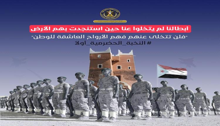 وقال المجلس في بيان له: "أبطالنا لم يتخلوا عنا حين استنجدت بهم الأرض، فلن نتخلى عنهم، فهم الأرواح العاشقة للوطن"، مؤكدًا أن النخبة الحضرمية كانت وما تزال درع الوطن وسيف الحق.
