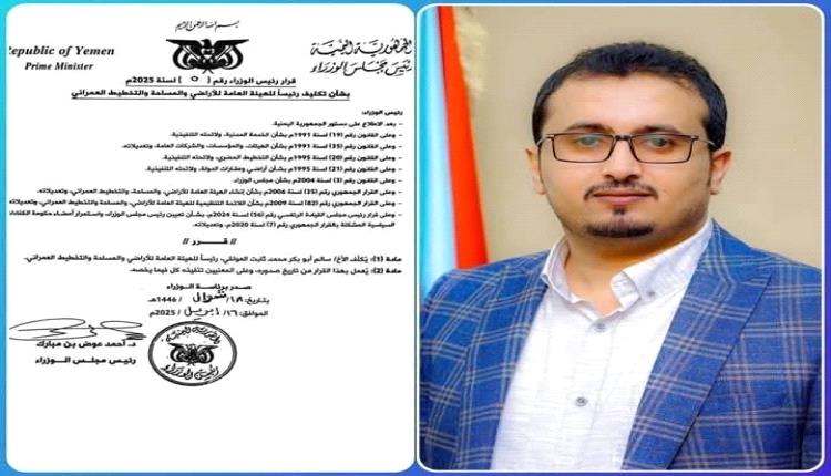 وعبر "الزهري" عن مباركته لقرار تكليف الشاب المناضل سالم العولقي رئيساً للهيئة العامة للأراضي والمساحة والتخطيط العمراني ، والذي يملك القدرة و الإمكانيات لتعزيز و تفعيل عمل الهيئة وتخطي المعوقات وإدارة عمل الهيئة بحنكة واقتدار .