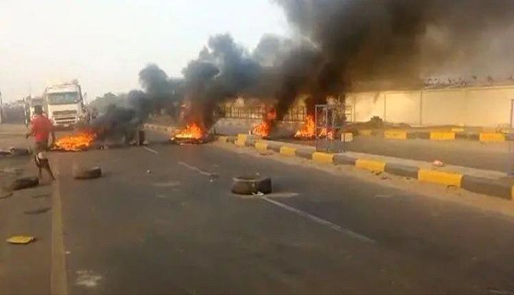 احرق محتجون غاضبون الاطارات التالفة في الشارع الرئيسي الرابط بين عدن وتعز في مدينة الحوطة بمحافظة لحج، جراء إستمرار انقطاع الكهرباء.