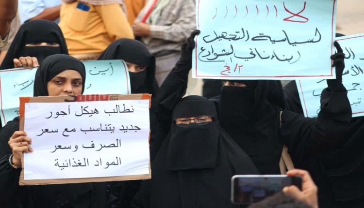 شارك المئات من اليمنيات في مظاهرة في عدن بجنوب البلاد السبت تنديدا باستمرار تدهور الأوضاع الاقتصادية والمعيشية وتردي الخدمات الأساسية وانقطاع الكهرباء لفترات طويلة. ورفعت المحتجات في المظاهرة التي أقيمت تحت شعار “ثورة النسوان في عدن” لافتات تطالب بتوفير الكهرباء، وتحسين الوضع المعيشي، والتعليم، والرواتب، والصحة، وتحسين الأوضاع الخدمية في مدينة عدن المعلنة عاصمة مؤقتة للبلاد ومقر الحكومة، وفي المحافظات الجنوبية.