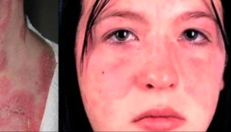 أشهره "طفح الفراشة" على الخدين والأنف، ويزداد بعد التعرض لأشعة الشمس.
