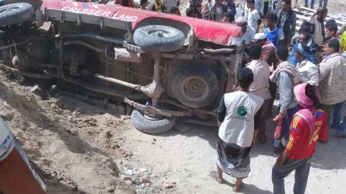 مصرع سيدة وإصابة آخرين في حادث مروري مروع بأبين