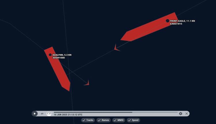 وأوضحت الوزارة في بيانها أن البلاغ ورد في الساعة 1:30 من صباح الثلاثاء 17 يونيو 2025، مشيرة إلى أن الحادث وقع بين ناقلة نفط تُدعى "ADALYNN" وترفع علم دولة أنتيغوا وباربودا، وسفينة شحن تُدعى "Front Eagle" وتحمل علم جمهورية ليبيريا.