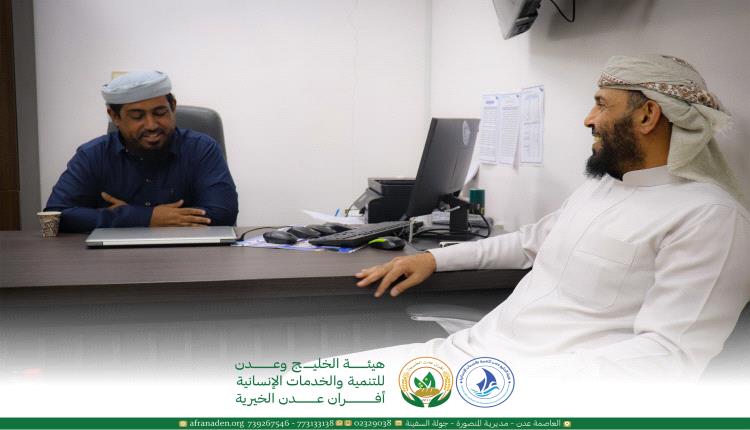 التقى رئيس هيئة الخليج وعدن للتنمية والخدمات الإنسانية، الأستاذ فهد البُري، والمدير التنفيذي الأستاذ سيف اليهري، اليوم في العاصمة عدن، بمدير عام مديرية خنفر، الأستاذ مازن اليوسفي، لبحث سبل استئناف نشاط "أفران عدن الخيرية" في المحافظة.