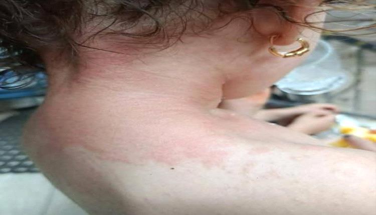 وأظهرت الصورة آثار حروق واضحة على جسد الطفلة، التي لم تجد وسيلة لحماية نفسها من الحرارة الخانقة داخل منزلها.