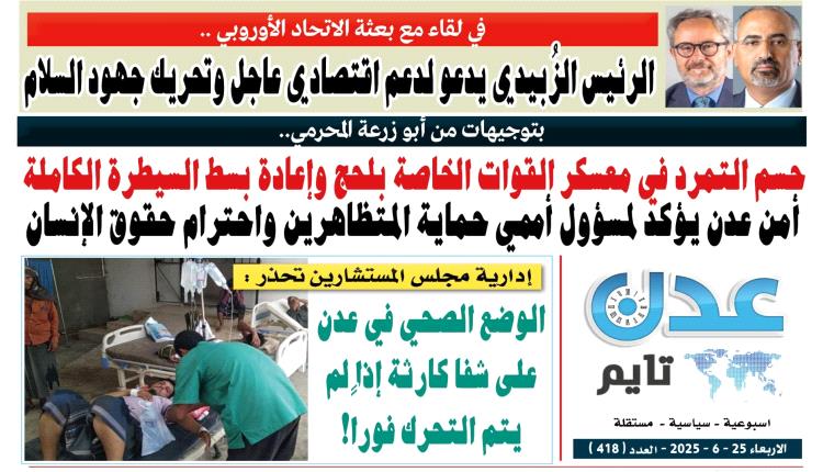 تصفح صحيفة عدن تايم بعددها رقم 418 الالكتروني .