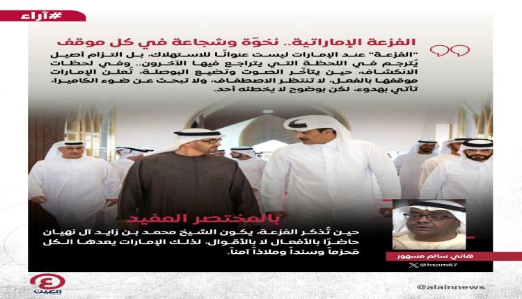 ولأن الكلمة موقف، والموقف يُخلد، لا بد أن نقولها بصراحة: الفزعة.. إماراتية