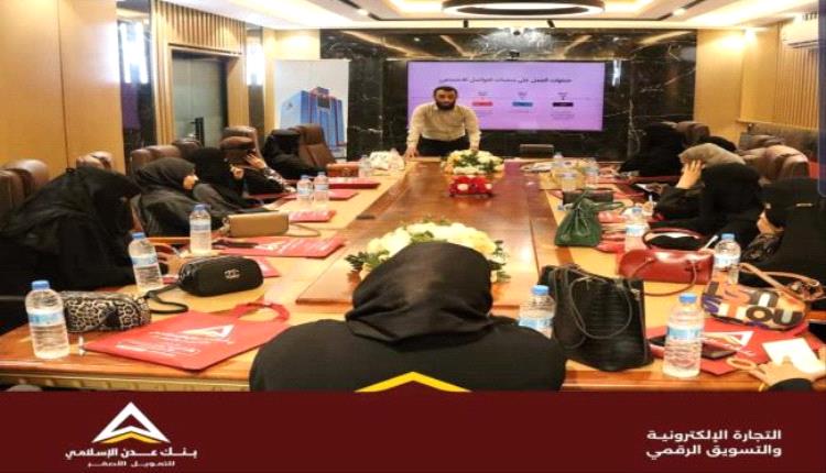 نظم بنك عدن الإسلامي للتمويل الأصغر، اليوم الإثنين، ندوة تدريبية بعنوان "تعزيز التجارة الإلكترونية والترويج الرقمي"، وذلك بالتزامن مع اليوم العالمي لوسائل التواصل الاجتماعي، ضمن جهوده لدعم وتمكين رائدات الأعمال والعاملات في المجال الرقمي.