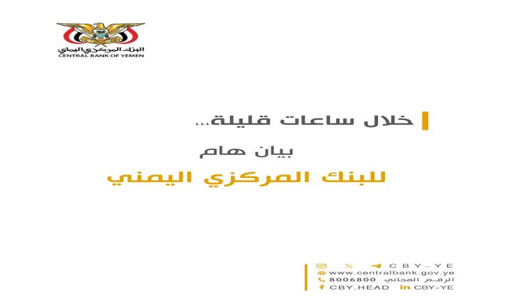 ونشر البنك عبر موقعه الرسمي، إعلان قال فيه : "خلال ساعات قليلة بيان هام للبنك المركزي اليمني".