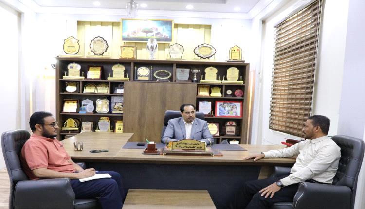 التقى معالي وزير الشباب والرياضة نايف صالح البكري، اليوم الخميس، نائب رئيس نادي الاحقاف بمديرية تريم محافظة حضرموت أمين سعيد العفاري، واستمع منه إلى شرح مفصل عن مجمل الأنشطة التي يقوم بها النادي وأهم احتياجاته.