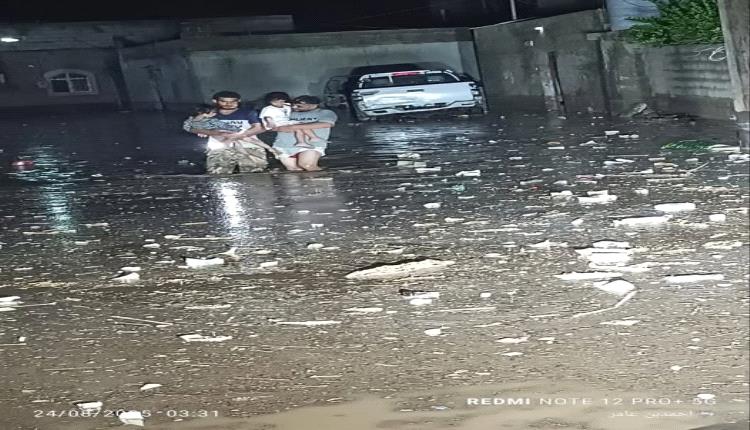 في مشهد إنساني مؤثر من منطقة الحسوة بعدن، وثّقت عدسات الكاميرا لحظة خروج أبوان وهما يحملان أطفالهما وسط السيول الجارفة، بعد أن غمرت المياه منازلهم وأجبرتهم على النزوح القسري.