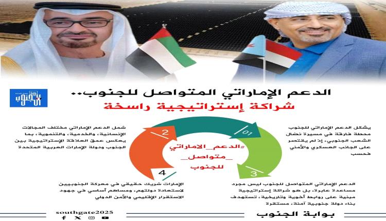 يُذكر أن الإمارات العربية المتحدة كانت ولا تزال شريكاً أساسياً في جهود إعادة الإعمار وتطوير الخدمات في محافظات الجنوب، منذ تحريرها من سيطرة المليشيات في عام 2015، ما جعلها شريكاً استراتيجياً موثوقاً في مرحلة البناء والتنمية.