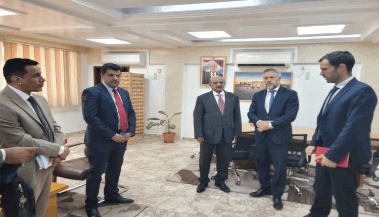 ومن جانبه عبر سعادة السفير عن سعادته لتمثيله دول الاتحاد الأوربي في الجمهورية اليمنية موكداً بذل كل الجهود لتعزيز العلاقات بين دول الاتحاد واليمن وحشد ما يمكن من دعم تقني وانساني لمساعدة الجمهورية اليمنية للتغلب على الأوضاع الصعبة والاستثنائية.حضر اللقاء نائب المحافظ ووكلاء القطاعات المختصة.