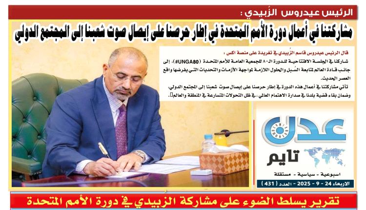 تصفح صحيفة عدن تايم بعددها رقم 431 الالكتروني .