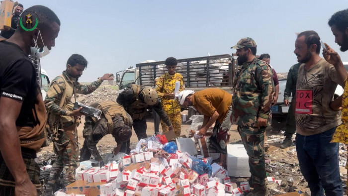 انتهت إدارة الشؤون القانونية بقوات الحزام الأمني، اليوم الخميس، من إتلاف كميات كبيرة من المواد المخدرة والمبيدات والسجائر المهربة والأدوية منتهية الصلاحية، بالتنسيق مع نيابة الصناعة والتجارة في العاصمة عدن.