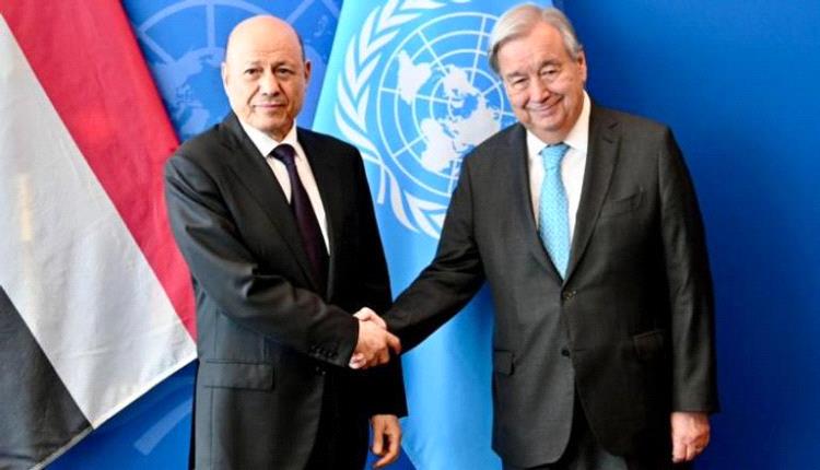 وأكد الأمين العام للأمم المتحدة "التزام المنظمة الدولية بالعمل الوثيق مع مجلس القيادة الرئاسي والحكومة من أجل مساعدة الشعب اليمني، وتحقيق تطلعاته في الأمن والاستقرار والسلام".