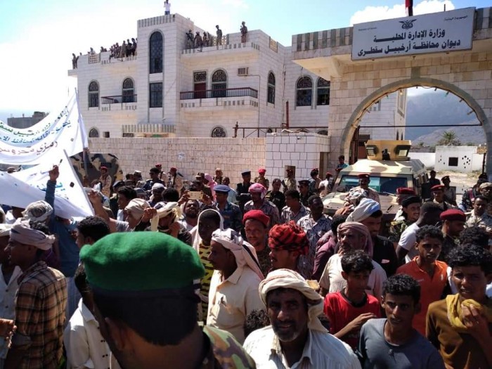 عاجل.. المتظاهرون يحاصرون ديوان سقطرى للمطالبة برحيل المحافظ الإخواني (صور)