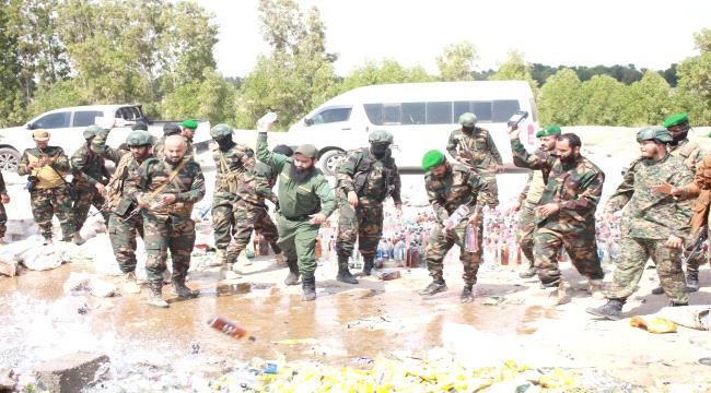 أشرفت نيابة مديرية البريقة في عدن على إتلاف 1762 قارورة خمر خارجي كانت معدّة للترويج خلال احتفالات رأس السنة، بتنفيذ من الإدارة العامة لمكافحة المخدرات في قوات الحزام الأمني.وشمل الإتلاف صب المشروبات...