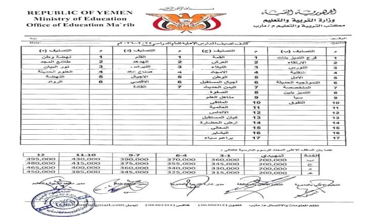 في واقعة تكشف غياب الرقابة وتحدي القرارات الرسمية، تفاجأ عشرات أولياء الأمور في محافظة مأرب بقيام إحدى المدارس الأهلية بفرض رسوم دراسية تفوق السقف الم