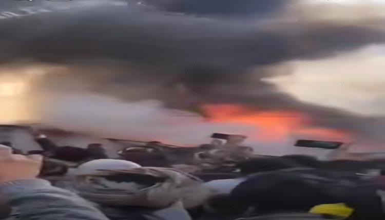 اندلع حريق ضخم، اليوم السبت، في المنطقة المحيطة بسوق مذبح في العاصمة المحتلة صنعاء، ما أدى إلى احتراق عدة مركبات كانت متوقفة بالقرب من السوق في مشهد أ
