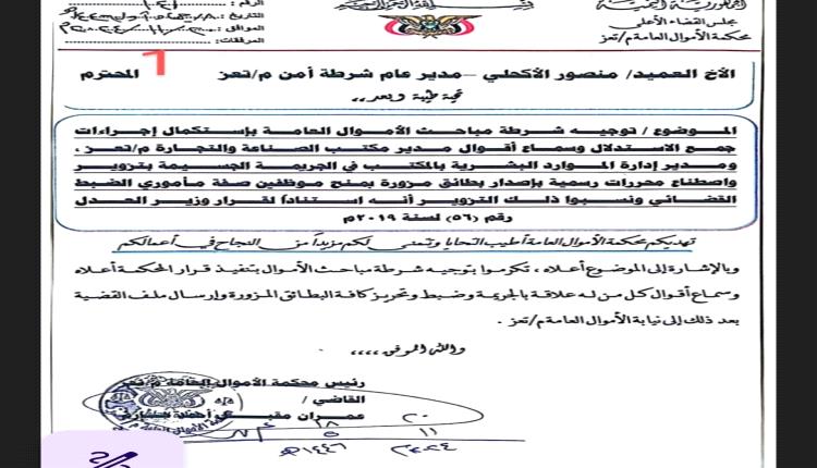 كشفت وثيقة رسمية مسرّبة تورط مكتب الصناعة والتجارة بمحافظة تعز في جريمة جسيمة تتعلق بتزوير واصطناع محررات رسمية.